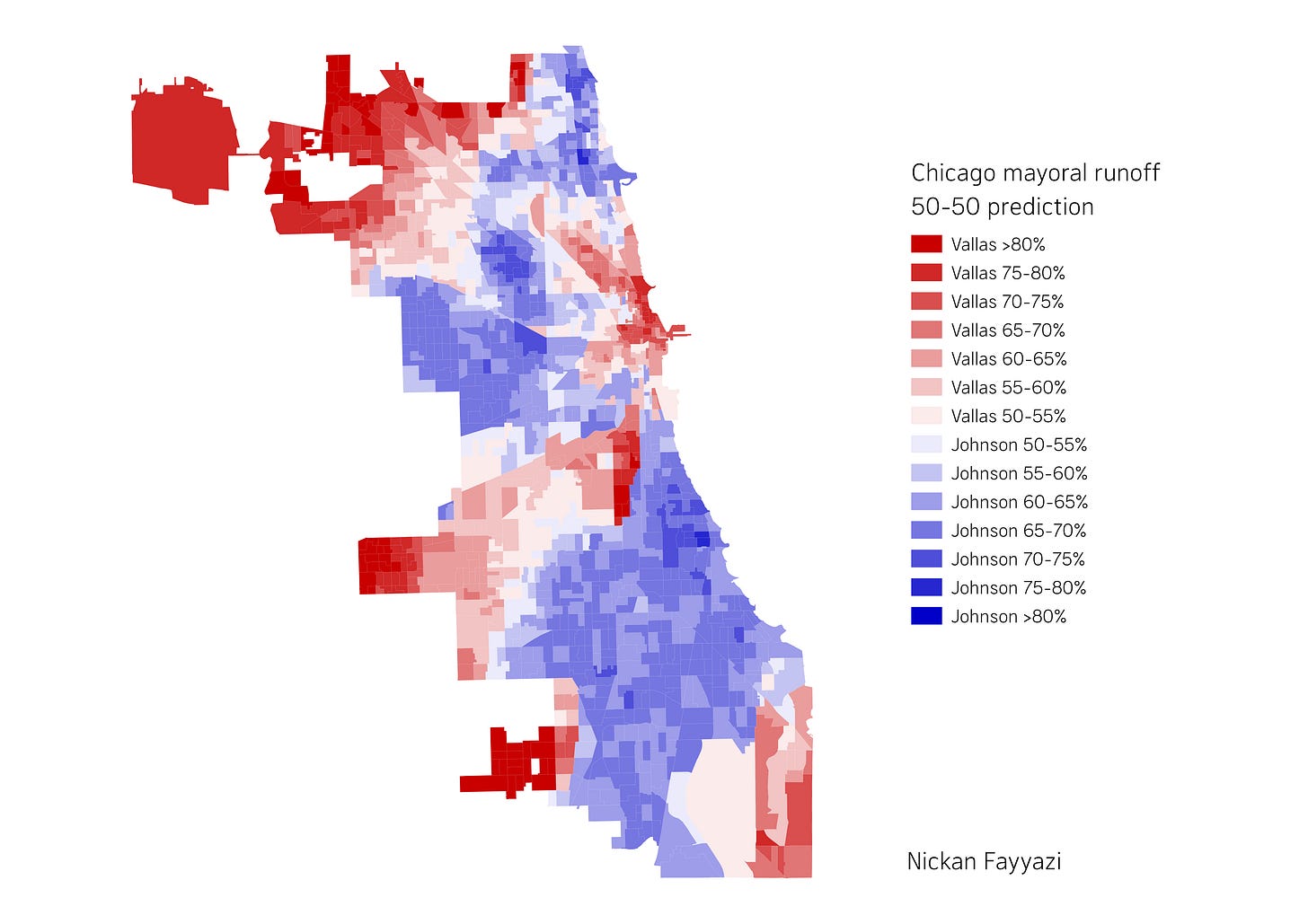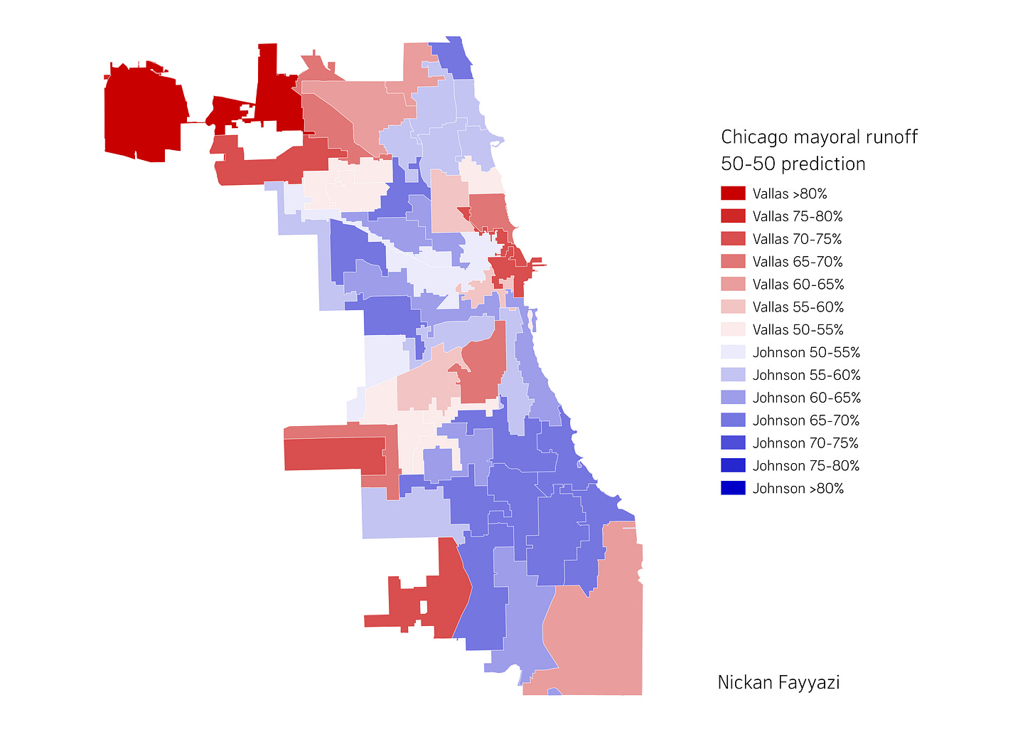 Whatever outcome occurs on Tuesday will of course have a significant impact on Chicago politics. The result will very likely be the closest since Harold Washington’s groundbreaking 1983 victory, to which this election contains many parallels. The political coalitions of each side of this race, some reflecting new trends and others reemerging from coalitions past, will be key as the upcoming four years of a new mayoralty play out. In terms of these coalitions, I look forward to seeing how well my map holds up.